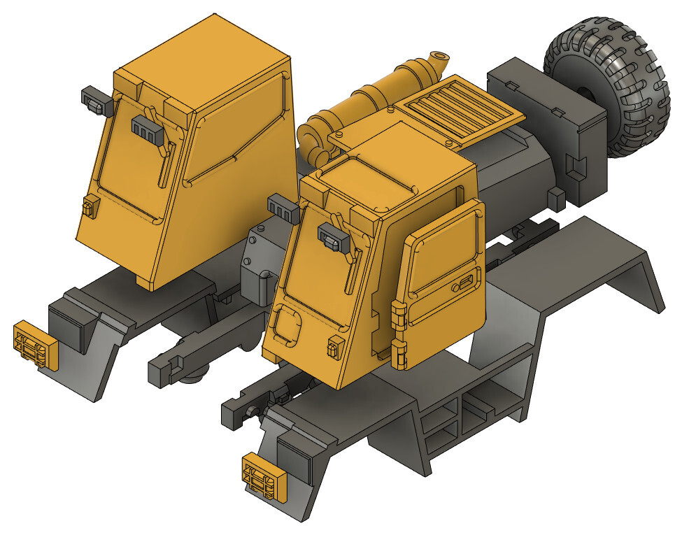 • Two cabin options: solid FDM printable cabins, or resin printable cabins with detailed interiors, and doors that can be modeled open.