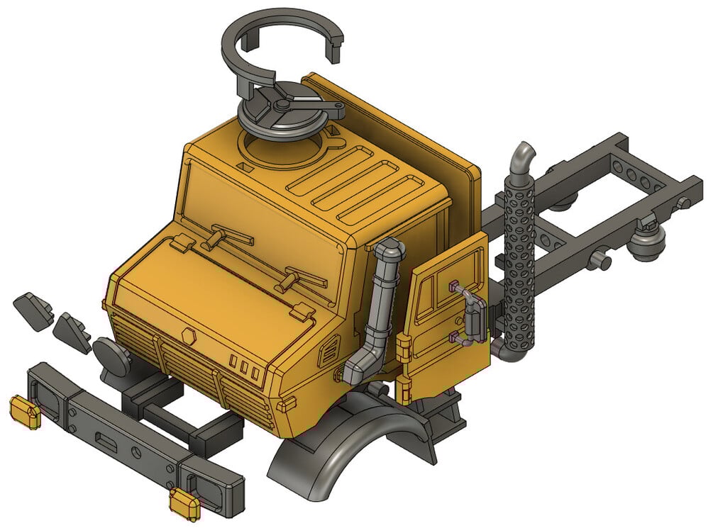 This kit also works with our other Truck kits, to add even more variety to your sci-fi tabletop. For example, an alternate cabin is included that fits gun rings. Optional resin printable detail parts are also included.